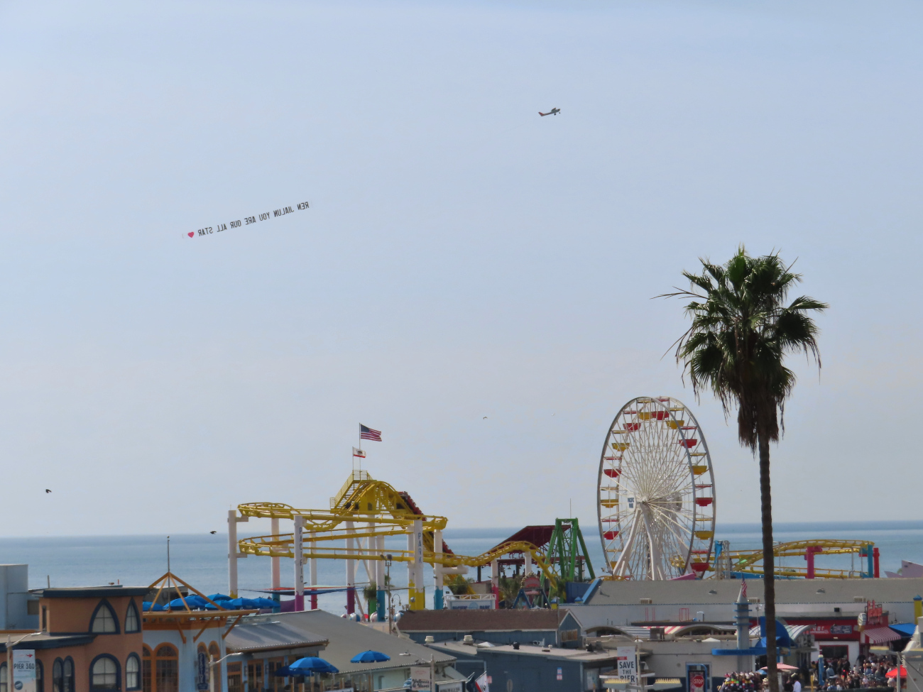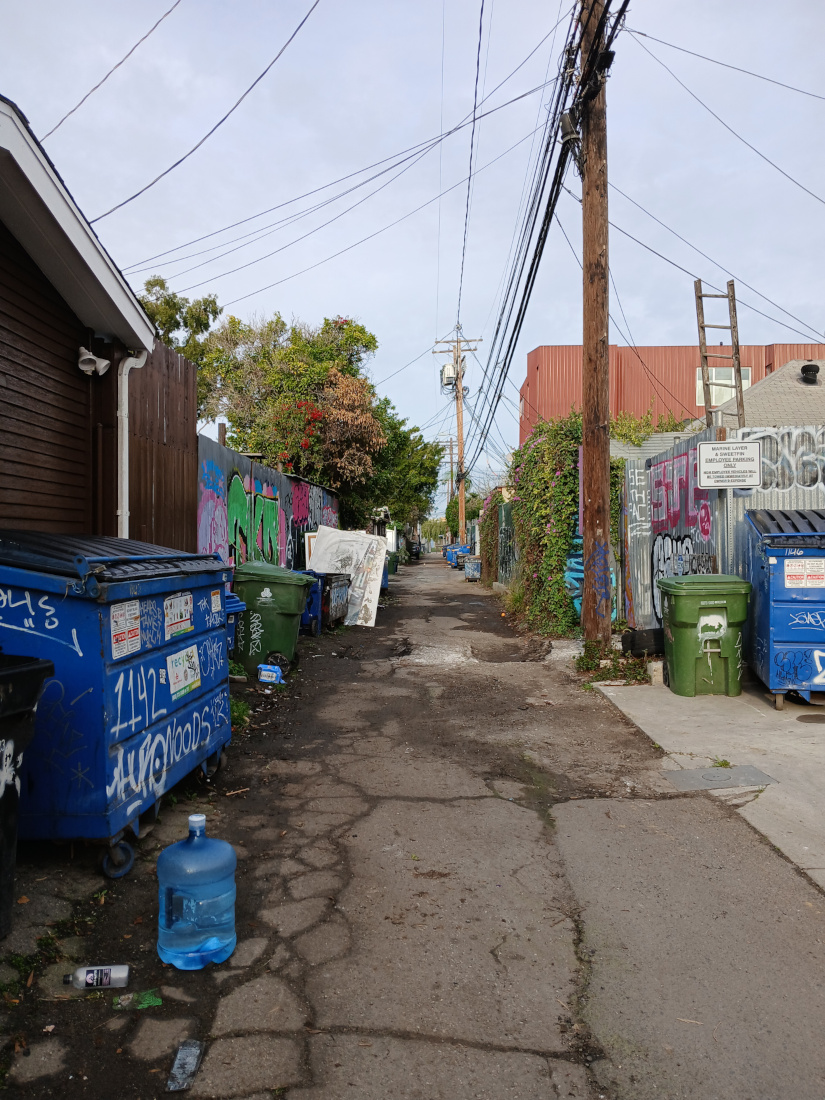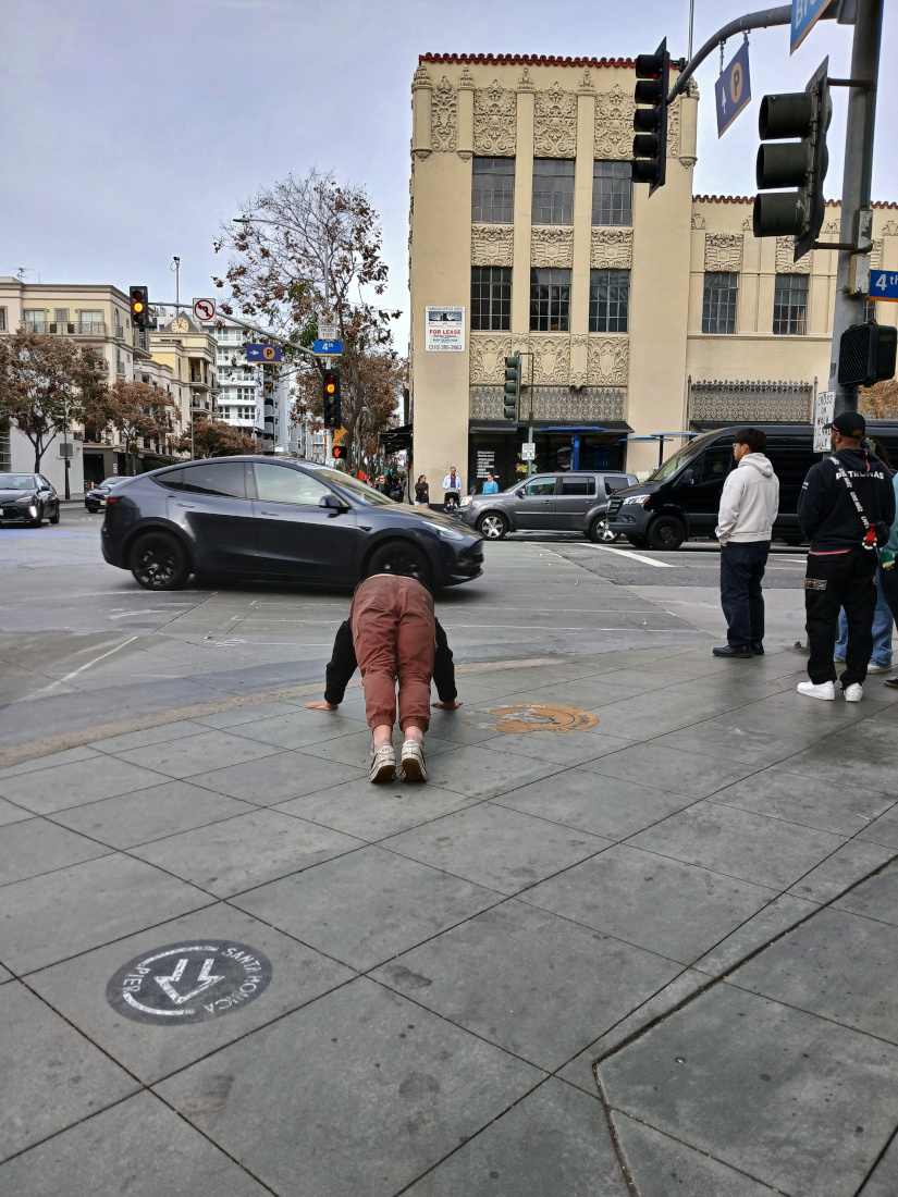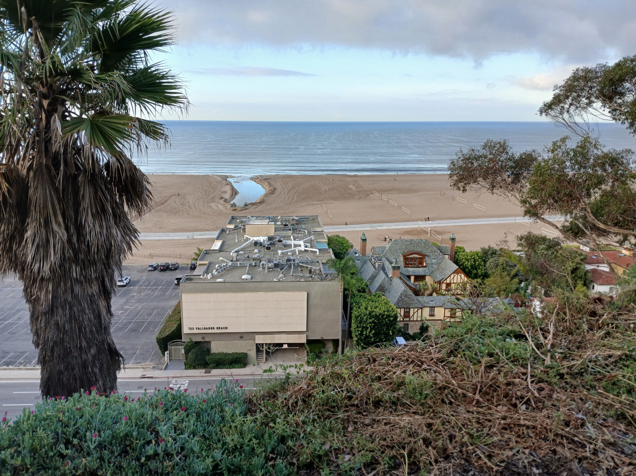 Je n’ai pas grand chose à montrer aujourd’hui. J’aurais pu prendre de superbes photos sous le déluge mais si j’avais fait ça, je n’aurais plus d’appareil photo – ou de téléphone portable. J’ai quitté mon antre de Santa Monica juste à temps ; ma nouvelle amie Kathryn est venue me chercher en voiture sous la pluie torrentielle alors que dans l’antre, le toit commençait à fuir, il gouttait à trois endroits différents, deux auprès de prises de courant. Sur l’autoroute, des mares géantes occupaient parfois plusieurs voies, les véhicules en décrochaient des gerbes d’eau spectaculaires et sur les voies de droite, certains avaient de l’eau jusqu’aux portières. C’était très impressionnant. Nous avons déjeuné dans un très chouette petit restaurant vers Echo Park et nos discussions m’ont vite fait oublier Santa Monica. Je ne remercierai jamais assez Kathryn pour sa présence – la qualité de sa présence, sa douceur, la richesse de nos échanges. Puis je suis arrivée à mon hôtel et quand je suis entrée dans ma chambre immaculée, délicatement parfumée, au cinquième étage, j’aurais pu pleurer. Quand il s’est arrêté de pleuvoir, je suis sortie faire un tour dans les rues plus désertes que jamais de Downtown (jour férié de déluge oblige) et une fois de plus j’ai été fascinée, soulevée, bouleversée par cette splendeur décadente. Je me suis arrêtée faire quelques courses et suis rentrée du supermarché sous une pluie battante qui a duré tout juste le temps de mon retour à l’hôtel – je ne peux pas consulter la météo heure par heure, voyez-vous, sinon j’aurais attendu à l’abri en prenant des photos. Malgré ma cape de pluie, la moitié de mes vêtements est en train de sécher dans la salle de bain et j’ai l’impression de gâcher la délicatesse des lieux. Comme si la poisse de m’être pris cette averse était un résidu de la crasse de SM que j’amènerais avec moi dans ce bel hôtel très chic. Quand je suis sortie de la salle de bain, la chambre était inondée de lumière.