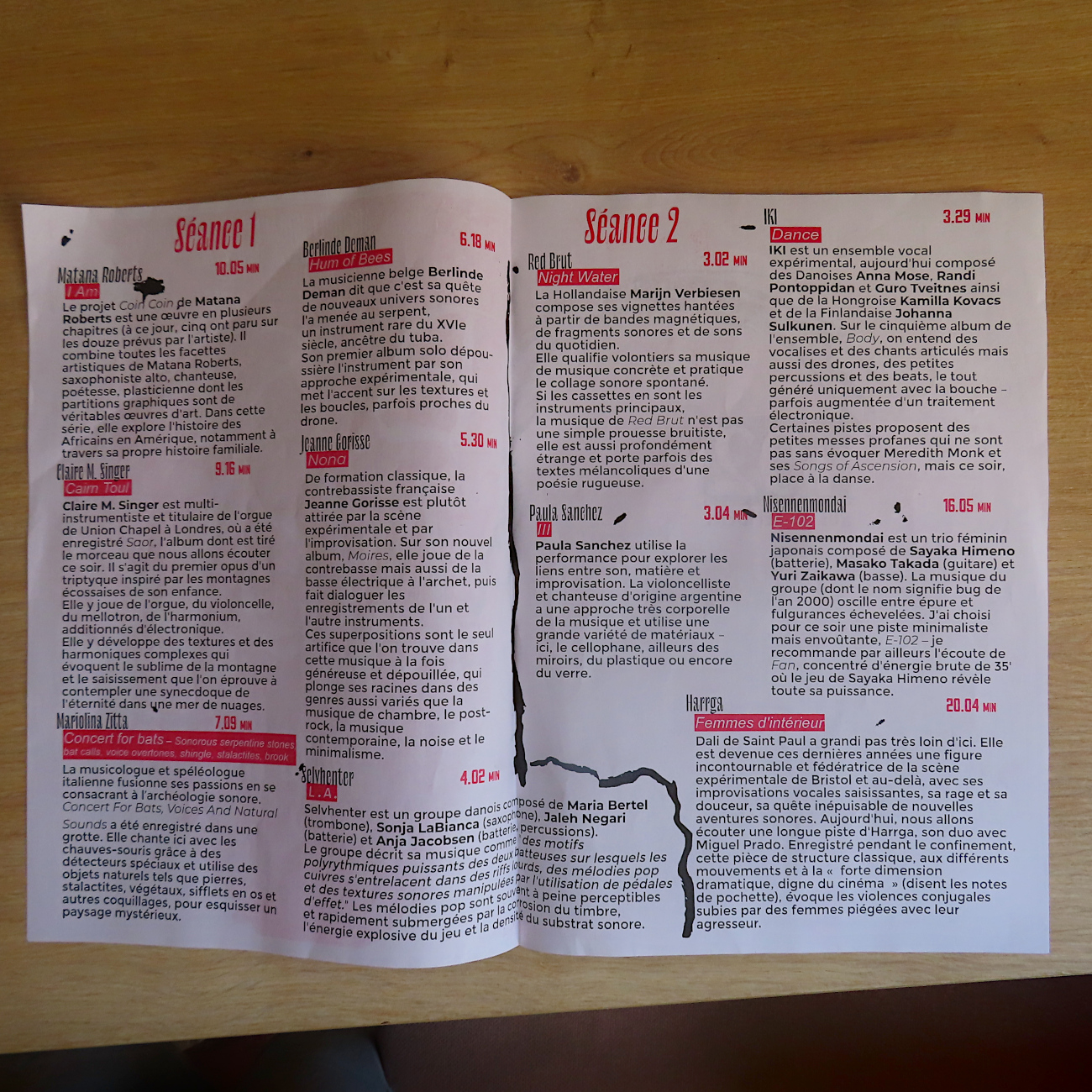 Je suis très heureuse de retourner à Grenoble, après cinq mois d’absence, et d’y retrouver quelques amies très chères. Le jeudi soir, je lirai des extraits de Paysages pauvres aux Modernes et le dimanche soir, je proposerai une nouvelle séance d’écoute au 102 – 1h30 d’une sélection musicale éclectique dans la pénombre, avec un entracte. Voici les visuels qu’on m’a envoyés – il est assez émouvant que j’y côtoie mes amies Katia Bouchoueva et Lénaïg Cariou sur le programme des Modernes, et la camarade Erell Latimier sur celui du 102 (pour mémoire, Delphine Dora et moi avons fait un entretien croisé avec Aude Rabillon et Erell dans le dernier numéro de Revue & Corrigée). Merci à Gaëlle et Samson pour leur invitation <3 <3 <3