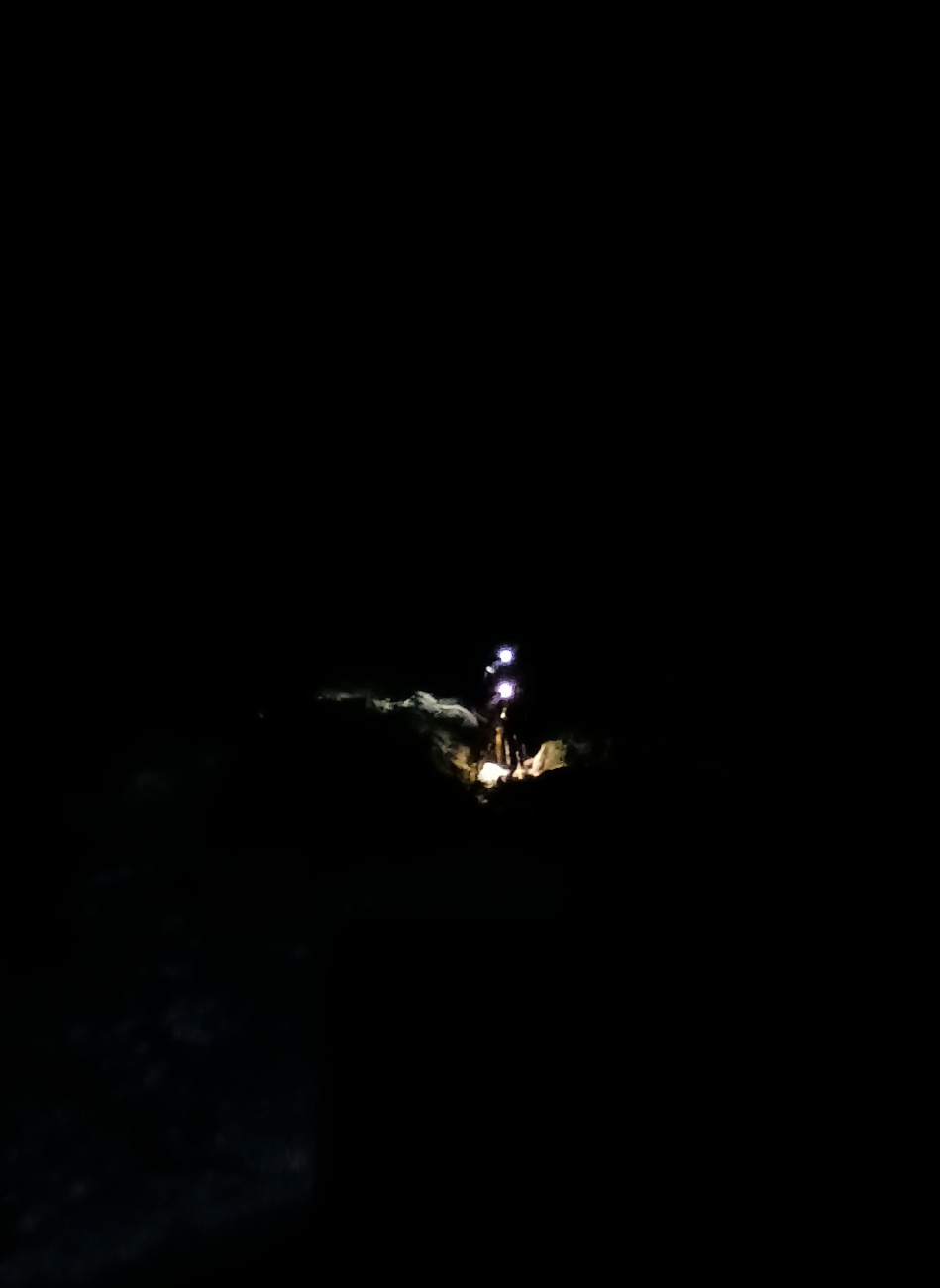 Ci-dessous, la descente quand nous avions encore trois lampes pour quatre.