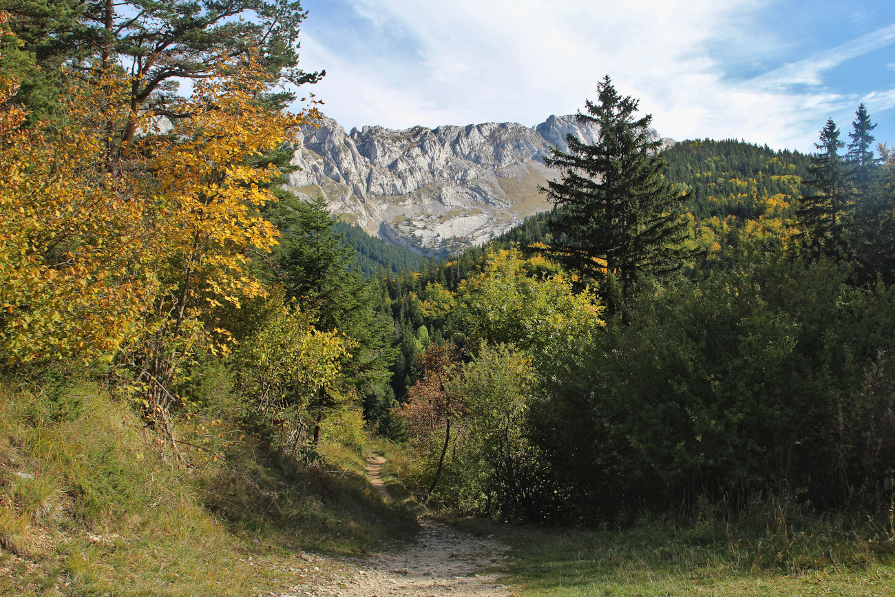 Mon paradis est un sentier à la conjonction de plusieurs paysages. En amont, une forêt de feuillus (j’ai relevé une quinzaine d’essences différentes) et de la roche ; en aval une clairière et, derrière, une forêt de conifères ; en face, les arêtes du Gerbier. Son calme et sa beauté lavent l’âme en profondeur.