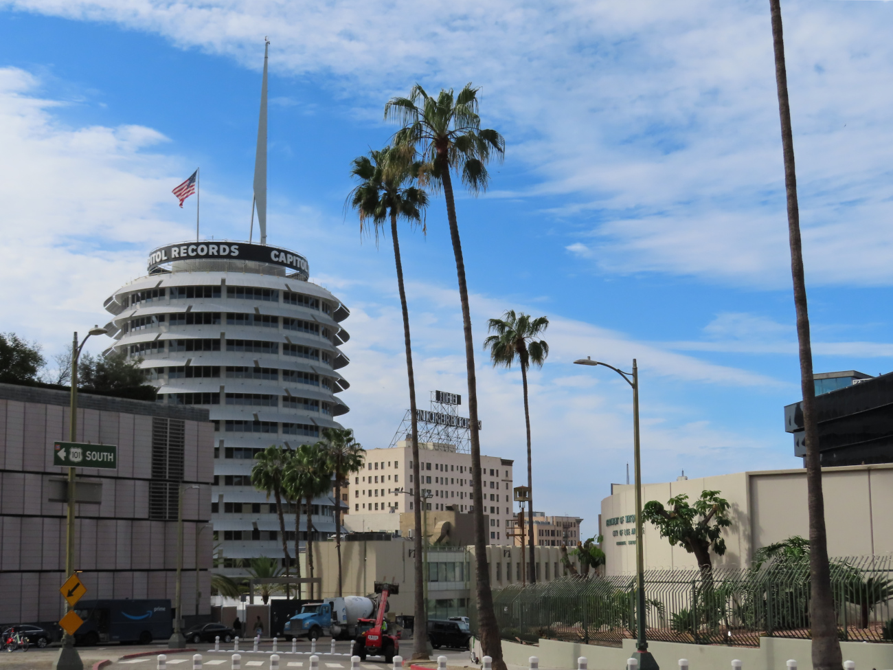 Le mythique bâtiment en forme de tour de vinyles, Capitol Records, que l’on voit aussi dans des dizaines de films – un véritable landmark de Los Angeles, parfois même utilisé comme establishing shot, cette image en ouverture de film, voire de générique, qui vous situe immédiatement l’action.
