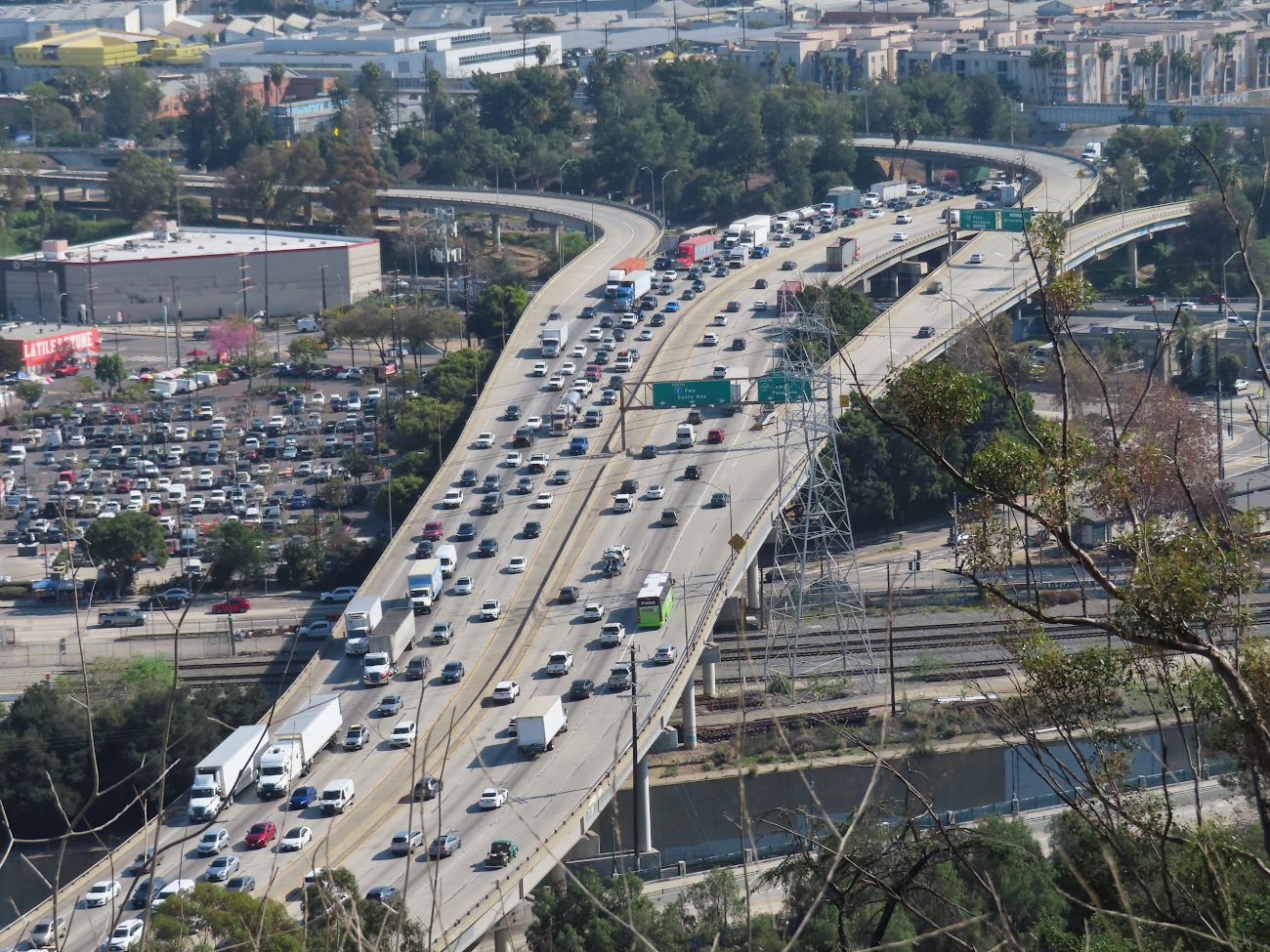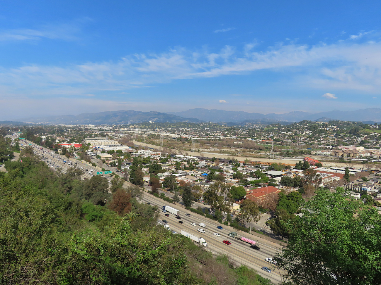 Puis le sentier a tourné au flanc de la colline et soudain j’ai dominé tout le nord-est de Los Angeles : je marchais en surplomb de l’Interstate 5 (par endroits elle était littéralement à mes pieds, quand la pente était abrupte) et de la L.A. River.