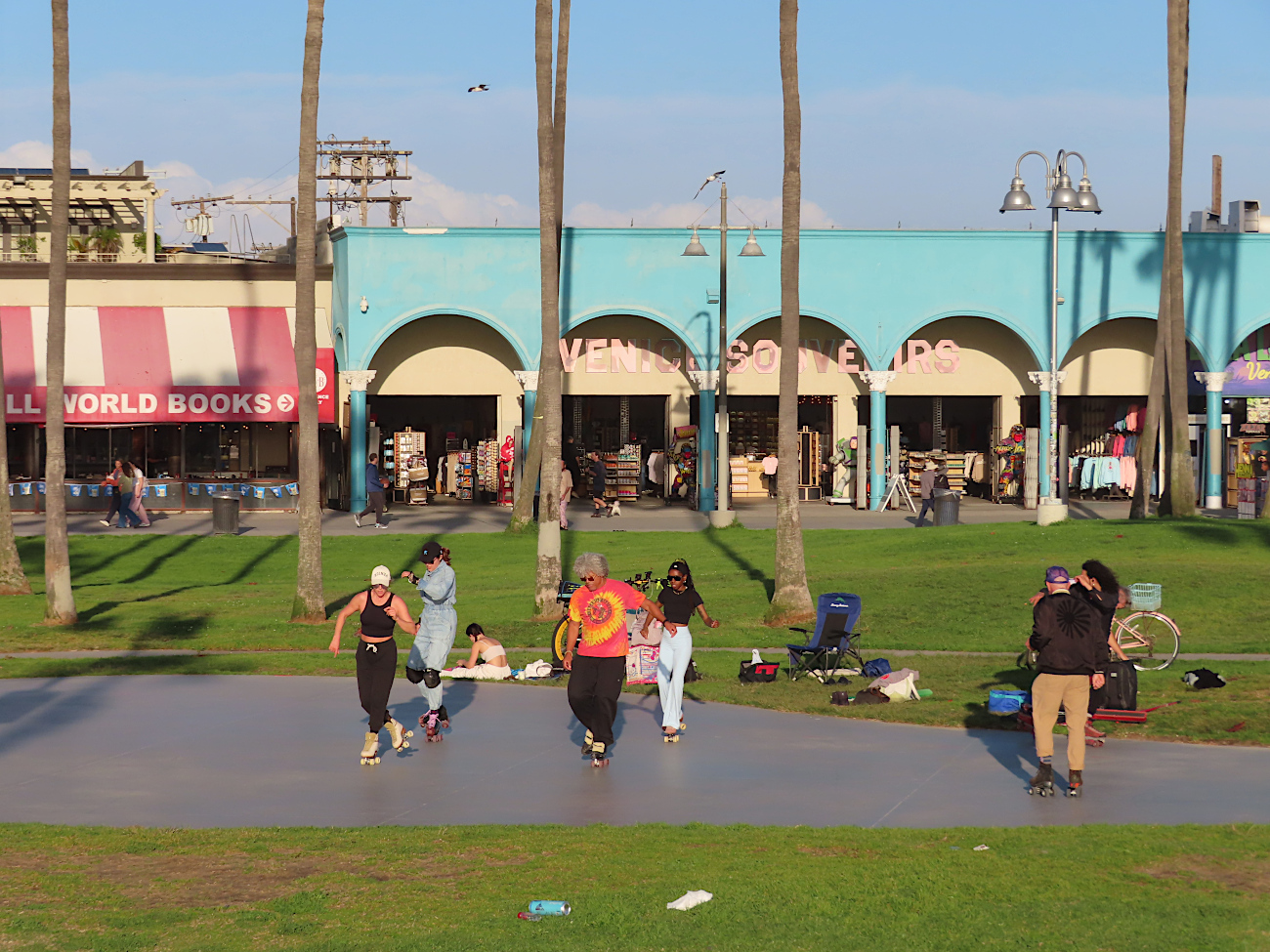 Les photos de glisse ci-dessus ont été prises à Venice. En fait, Venice est aussi schizo que Downtown, avec des riches si riches qu’ils ne sortent pas de chez eux et des sans-abri dans tous les recoins, mais ici en plus il y a des bandes de gars plutôt effrayantes. Et quelques centaines de mètres plus loin, on trouve les snobs de Santa Monica – SM, oui. Le seul réconfort ici est l’océan, particulièrement au coucher du soleil mais il faut éviter d’être du côté de Venice (mon taudis est à la limite des deux) où des types super lourds vous abordent toutes les trois minutes. Ces lieux, je les avais déjà visités avec Valentina et ça m’avait plu, mais c’était différent : j’étais avec Valentina, on riait, on commentait tout. Et on n’y a passé qu’une journée – c’était, je le comprends aujourd’hui, amplement suffisant.