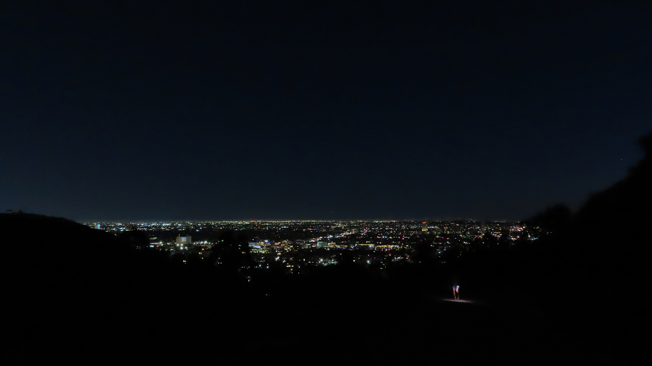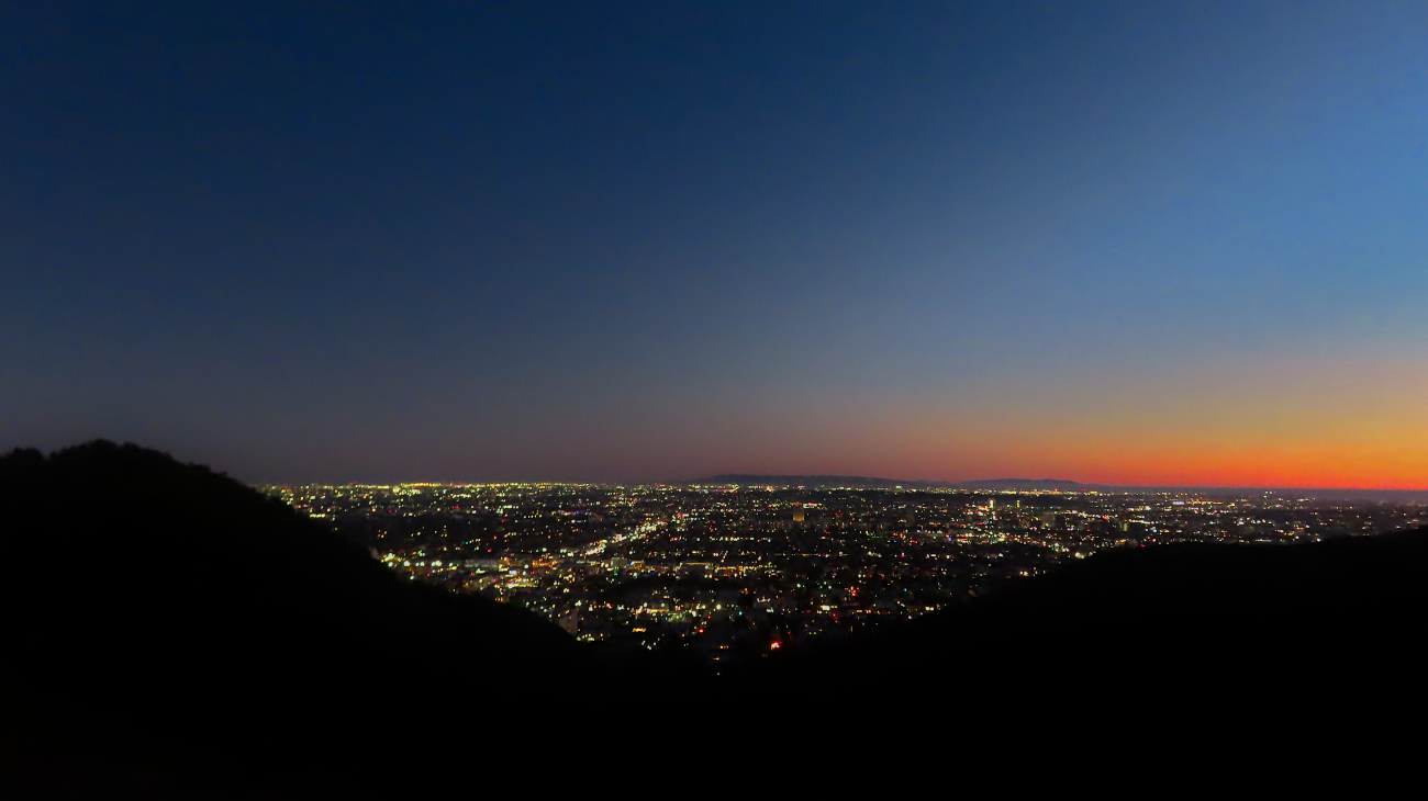 Ce qu’aucune photo, même meilleure que les miennes, ne pourra montrer, c’est que les lumières tremblent dans la chaleur (je vous vois venir mais non, pas forcément dans la pollution, car un Angeleno m’a dit qu’il était très rare d’avoir une vue si claire jusqu’à Santa Monica). Puis il a commencé à faire vraiment nuit et même les plus bavard-es se sont tu-es. J’ai versé une petite larme, je ne le cache pas. J’étais réconciliée avec mes congénères.