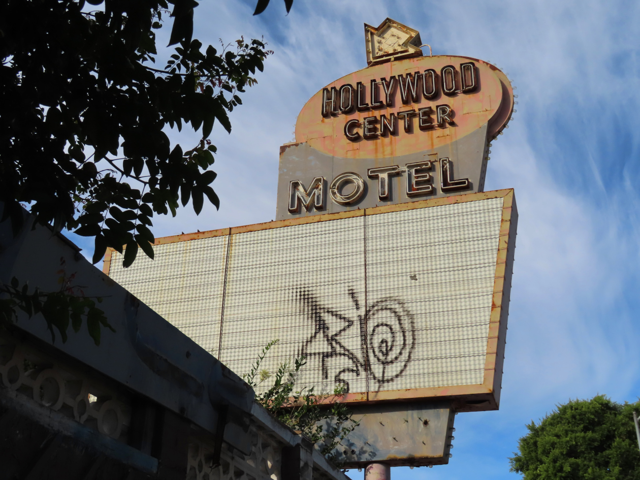 J’ai d’abord marché sur Sunset Bvd et décidé de suivre un fil thématique sur les enseignes à l’américaine, que j’adore. On en trouve sur tous les styles de bâtiments – Googie, brutaliste, Beaux-Arts, Art déco, hispanisant, etc. D’abord, un motel désaffecté (où on découvre un cadavre dans L.A. Confidential de Curtis Hanson, 1997). Puis je vous laisse découvrir.